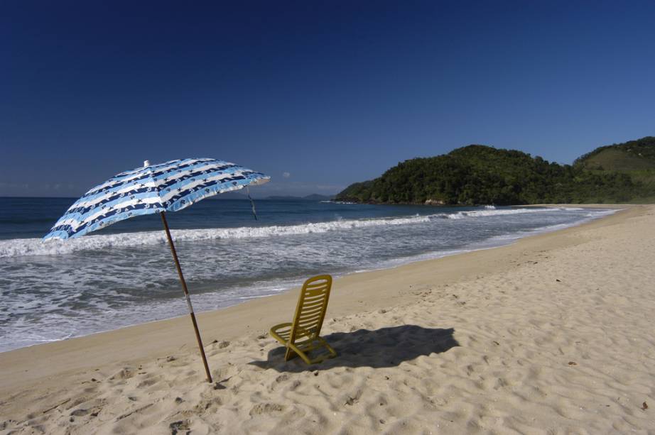 A Cachoeira do Prumirim forma um rio que deságua no canto esquerdo da praia, onde o mar é calmo e bom para banho. Em frente fica a Ilha do Prumirim, ponto de mergulho e destino de passeios de escuna. Acesso controlado por um condomínio.