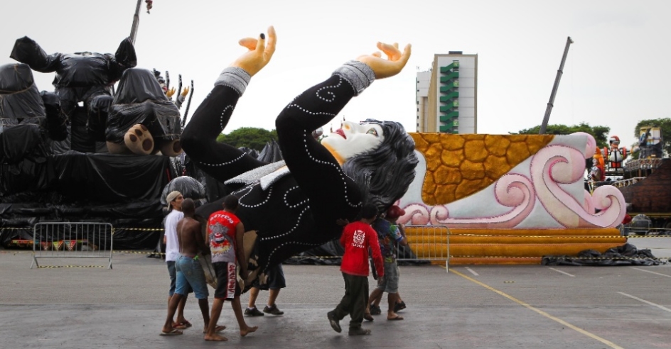É que a Dragões da Real, que cai no sambódromo às 2h45 da madruga deste sábado (29), vai tributar os anos 80. Vão falar de ET – O Extraterrestre, Os Saltimbancos, Freddy Krueger, Jason, Brinquedo Assassino, Caverna do Dragão, Corrida Maluca… E de rock: o bonecão Gene Simmons “de Olinda” vai compor um carro em homenagem ao Kiss. A Dragões também vai cantar David Bowie e o movimento punk.