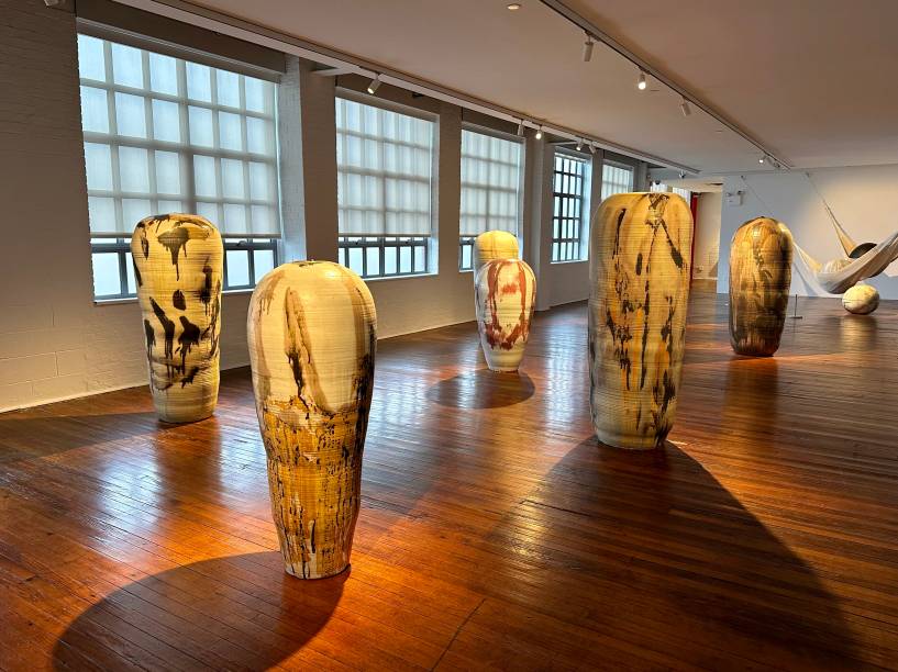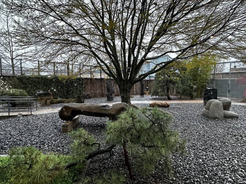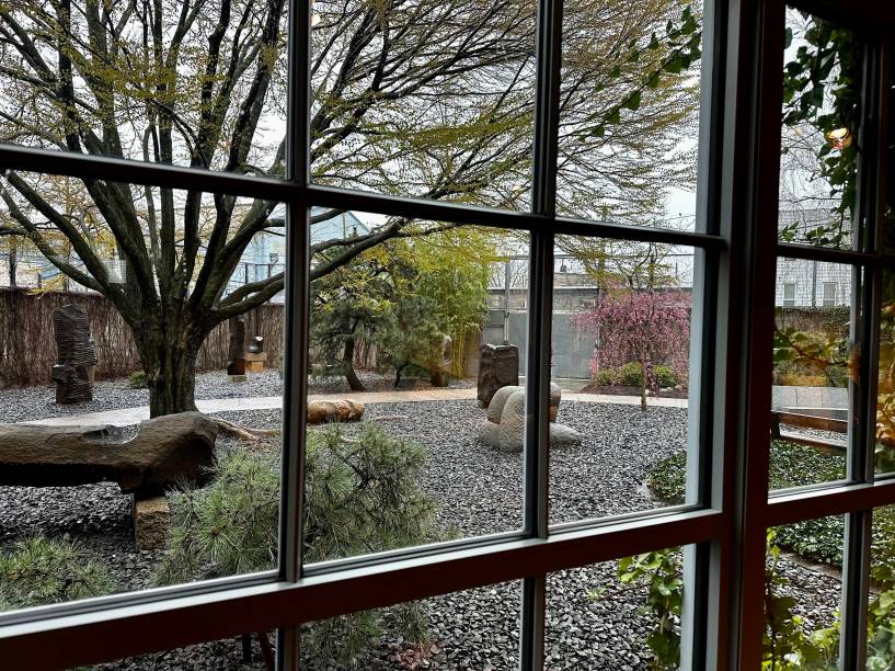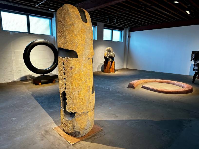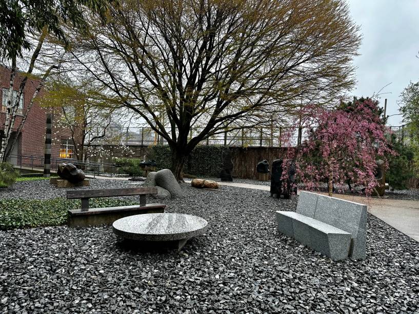 No museu do Queens, as raízes orientais do artista são fortemente sentidas em toda parte: no som ambiente de uma sala, no silêncio de outra, na arquitetura, nas obras. As peças são exibidas em salas e também no belo jardim de esculturas cercadas por árvores que na primavera ficam carregadas de flores delicadas.