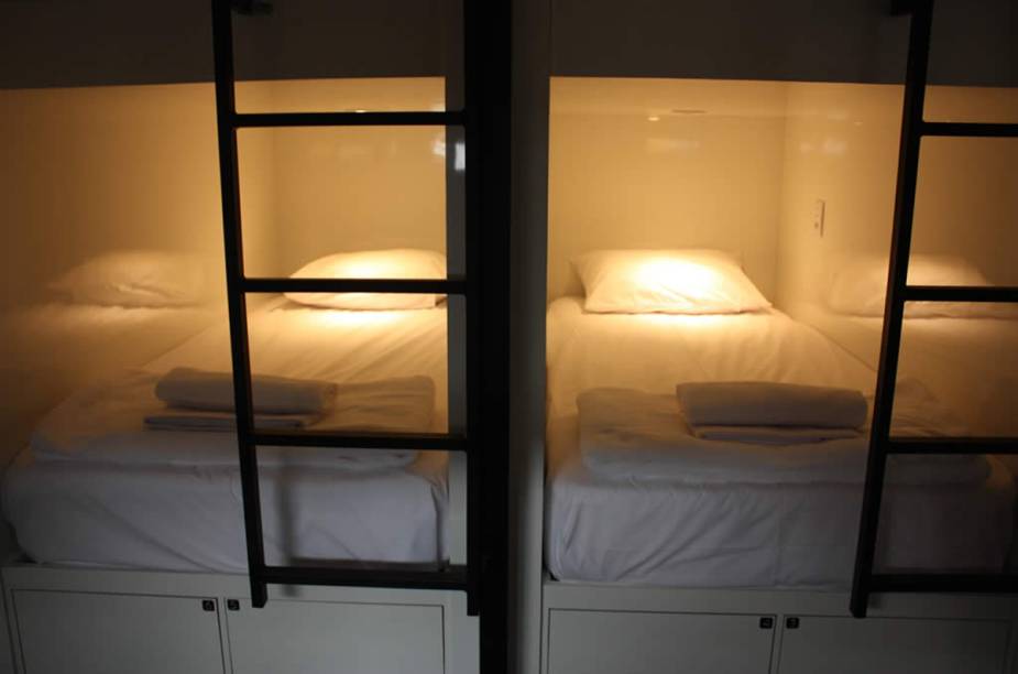 Os privativos têm bom espaço interno, mas carecem de mais móveis e equipamentos. Os coletivos dispõem de lockers sob as camas e, em alguns quartos, uma cômoda com gavetas de reforço – os quartos têm camas-casulo ou as tradicionais camas laterais.
