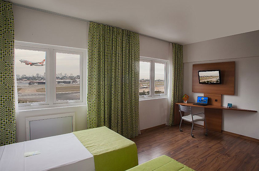 1/2 O quartos de final 10 e 17 do hotel têm vista para a pista do aeroporto de Congonhas, em São Paulo (SP) (Divulgação)