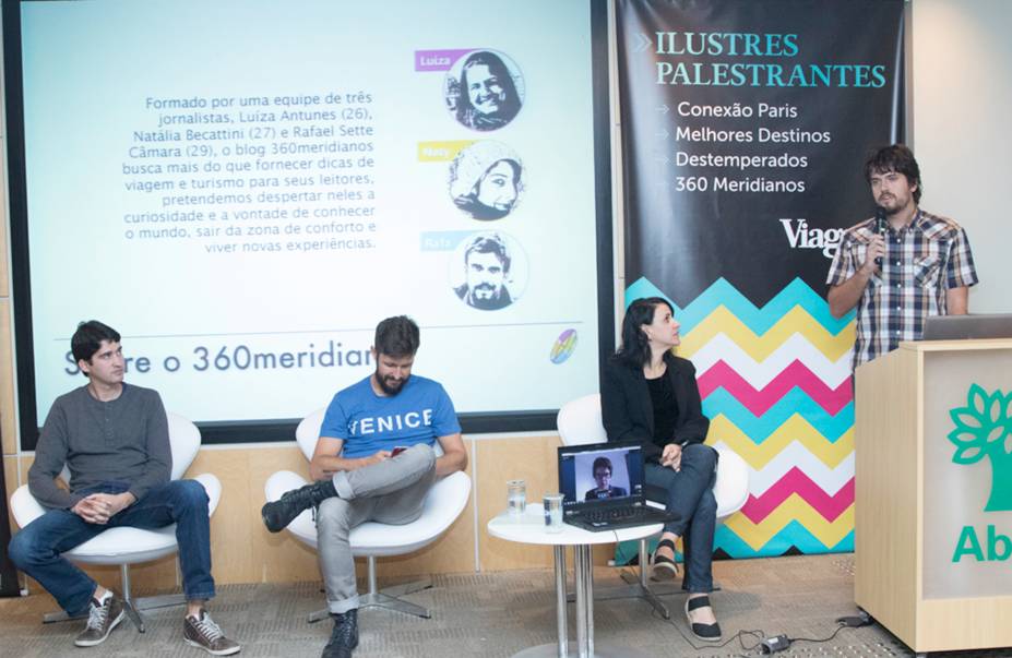 A Viagem e Turismo promoveu um bate-papo na Editora Abril, em São Paulo (SP), com os blogueiros do Conexão Paris, Melhores Destinos, Destemperados e 360 Meridianos no último dia 29. A primeira edição do evento, aberta somente para convidados, tinha como objetivo responder uma questão: “afinal, como viver do seu blog de viagem?”.