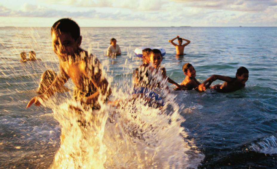 De um lado, praias de águas calmas e azuis lembram uma imensa piscina. Do outro, ondas se chocam violentamente contra uma barreira de corais. No meio, uma ilhota de 10 quilômetros de extensão e de ridículos 20 a 400 metros de largura, onde a altitude máxima alcança a marca dos… 4 metros. Estamos em Funafuti, a capital de Tuvalu, o quarto menor país do mundo – depois do Vaticano, de Mônaco e de Nauru, este também na Oceania. Com uma área total de 26 quilômetros quadrados e menos de 11 mil habitantes, o arquipélago é formado por 30 ilhas e nove atóis. Seu nome significa “grupo de oito”, em razão das únicas oito ilhas habitadas do arquipélago. O lugar vive da pesca, de doações do Reino Unido, Austrália e Nova Zelândia e dos royalties gerados pelo uso do prefixo telefônico 900 e do domínio “.tv” por sitesde internet. Não é fácil chegar a esse paraíso de praias vazias do Oceano Pacífico. Partindo do Brasil, são necessários três dias de viagem e várias escalas. O único aeroporto local recebe apenas um voo semanal, vindo da vizinha Fiji, e o avião fica ali parado por cinco dias para só então fazer a viagem de volta.