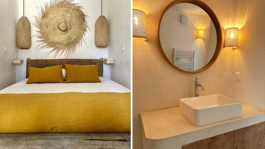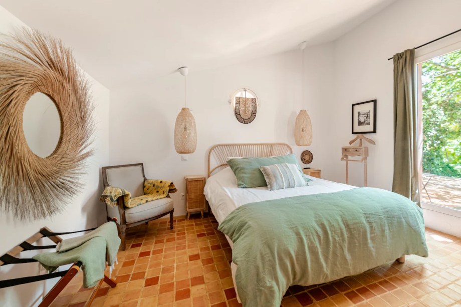 A casa: Com vista para o vilarejo em tons de ocre de Roussillon, esta casa exala o charme de uma fazenda colorida. Escondida atrás de um muro de pedra e rodeada por lavandas, oliveiras e pinheiros, ela conta com um jardim amplo, com piscina de água salgada. Do lado de dentro, há cozinha equipada, ar-condicionado, TV e detalhes como livros, decoração em palha e almofadas que lembram casas de vó. A sala de estar convida para momentos de descanso no sofá e nas cadeiras de palha, enquanto o quarto no térreo, acessível pelo jardim, garante privacidade e aconchego. Entre a lareira decorativa e a jacuzzi, a hospedagem encontra um equilíbrio entre charme rústico e comodidade. Reserve aqui.
