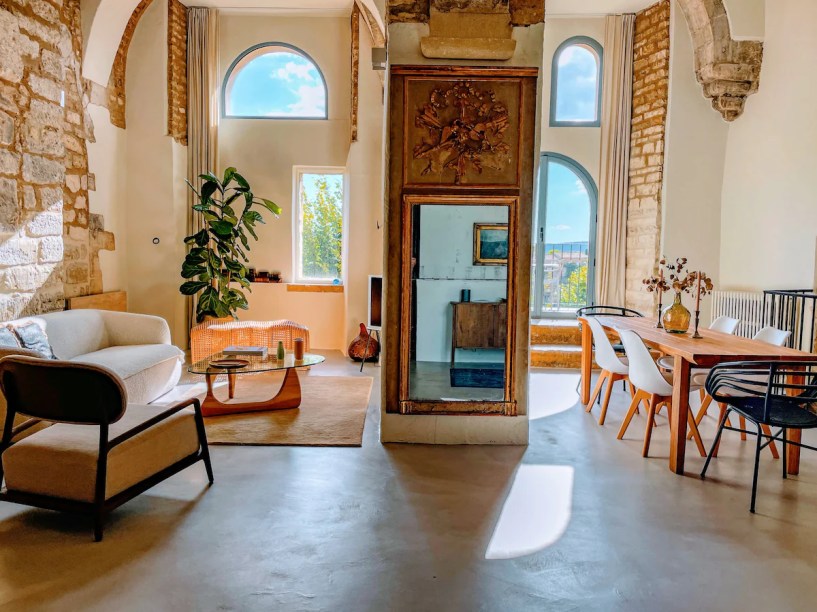A casa: Totalmente renovada, essa casa do século 17 no coração de Gordes revela detalhes de épocas distantes em sua arquitetura, com paredes de pedra e tetos altos. A varanda se abre para uma vista do Luberon que parece saída de um quadro, enquanto os interiores combinam história e conforto moderno. Ideal para receber até quatro hóspedes, o espaço possui duas suítes, escritório e sala de estar de decoração vintage. O banheiro é um espetáculo a parte, com paredes que remetem à uma gruta e mantém o ambiente refrescante. Com serviço de concierge, cada detalhe é pensado para que a estadia seja tão inesquecível quanto o cenário provençal ao redor. Reserve aqui.