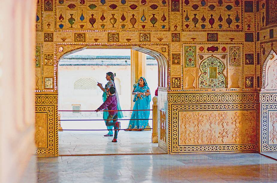 Lá jantei cogumelos ao curry num prato folheado a ouro e descobri um bom vinho local, o Sula. O garçom contou que a trupe da novela Caminho das Índias ficou hospedada ali, em 2009. Passaram bem. Considerada por muitos uma extensão de Jaipur, de tão perto, a cidade de Amber tem um forte estonteante, o Amber Fort, com espelhinhos encravados nas paredes.