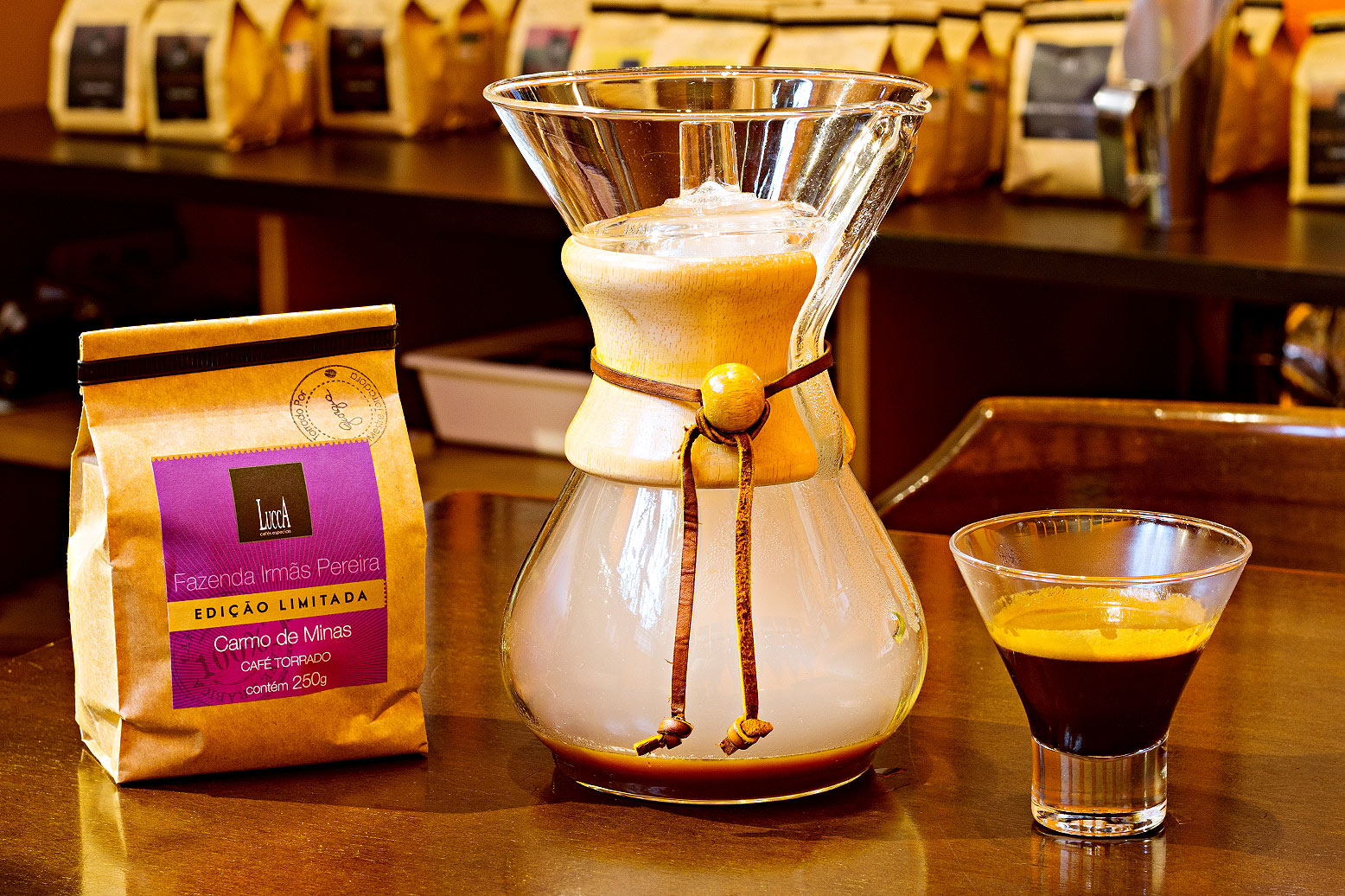 O ótimo expresso do Lucca Cafés Especiais, em Curitiba (PR), é preparado com grãos torrados sob temperatura controlada.